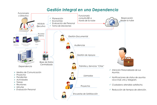 Herramienta diseñada para la gestión de Citas y gestión de trámites, reduce en gran manera los tiempos de atención y mejora la calidad de los trámites y servicios que prestan organismos públicos y privados, ideales para organismos que brinda atención al público y profesionistas que ofrecen servicios a los ciudadanos, los cuales requieren de gestionar una cita para su atención, (Oficinas de Hacienda, Secretarias de Educación, Delegaciones Federales, Doctores, Dentistas, Estilistas, Abogados).
